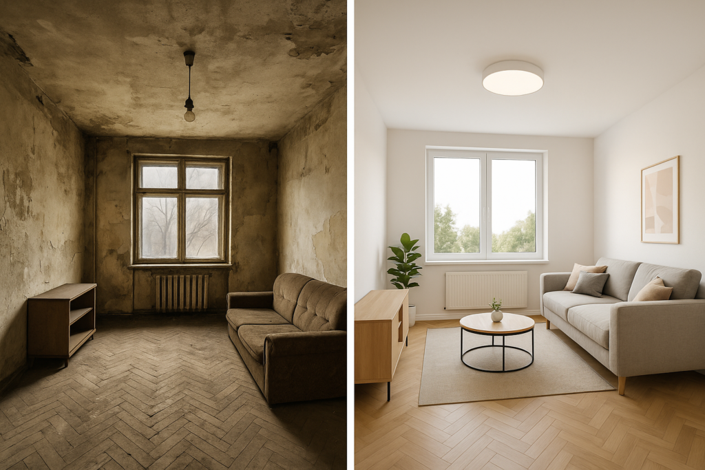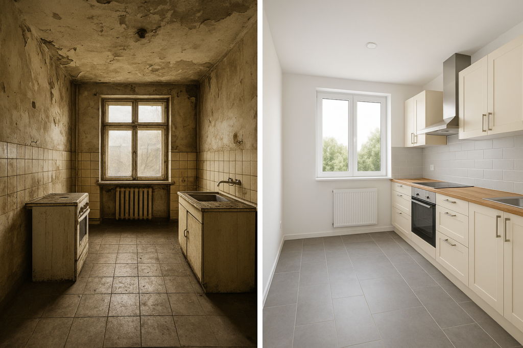 Wir kaufen sanierungsbedürftige Wohnungen und Häuser, entwickeln diese strategisch weiter und schaffen nachhaltige Wohnwerte – wirtschaftlich durchdacht, qualitativ hochwertig und marktgerecht umgesetzt.